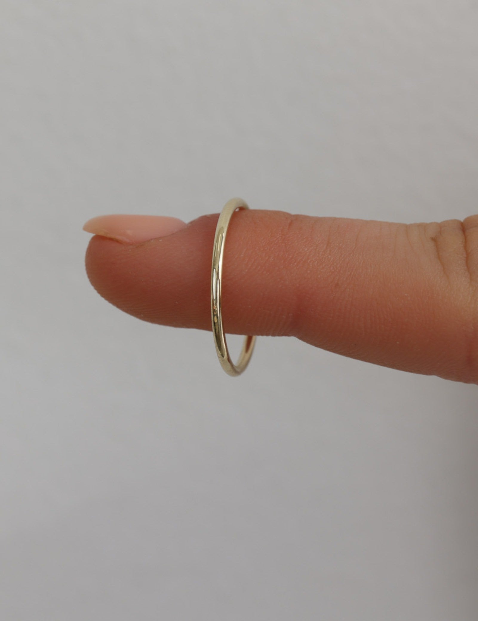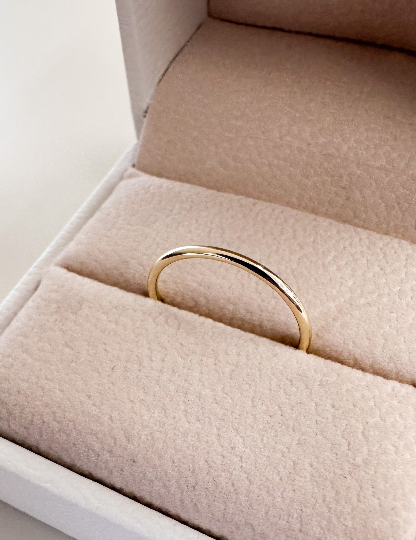 Timeless and elegant, the Mia Ring in fine solid 9K gold offers a minimalist touch to any look. Its sleek, unadorned design makes it perfect for both everyday wear and special occasions.