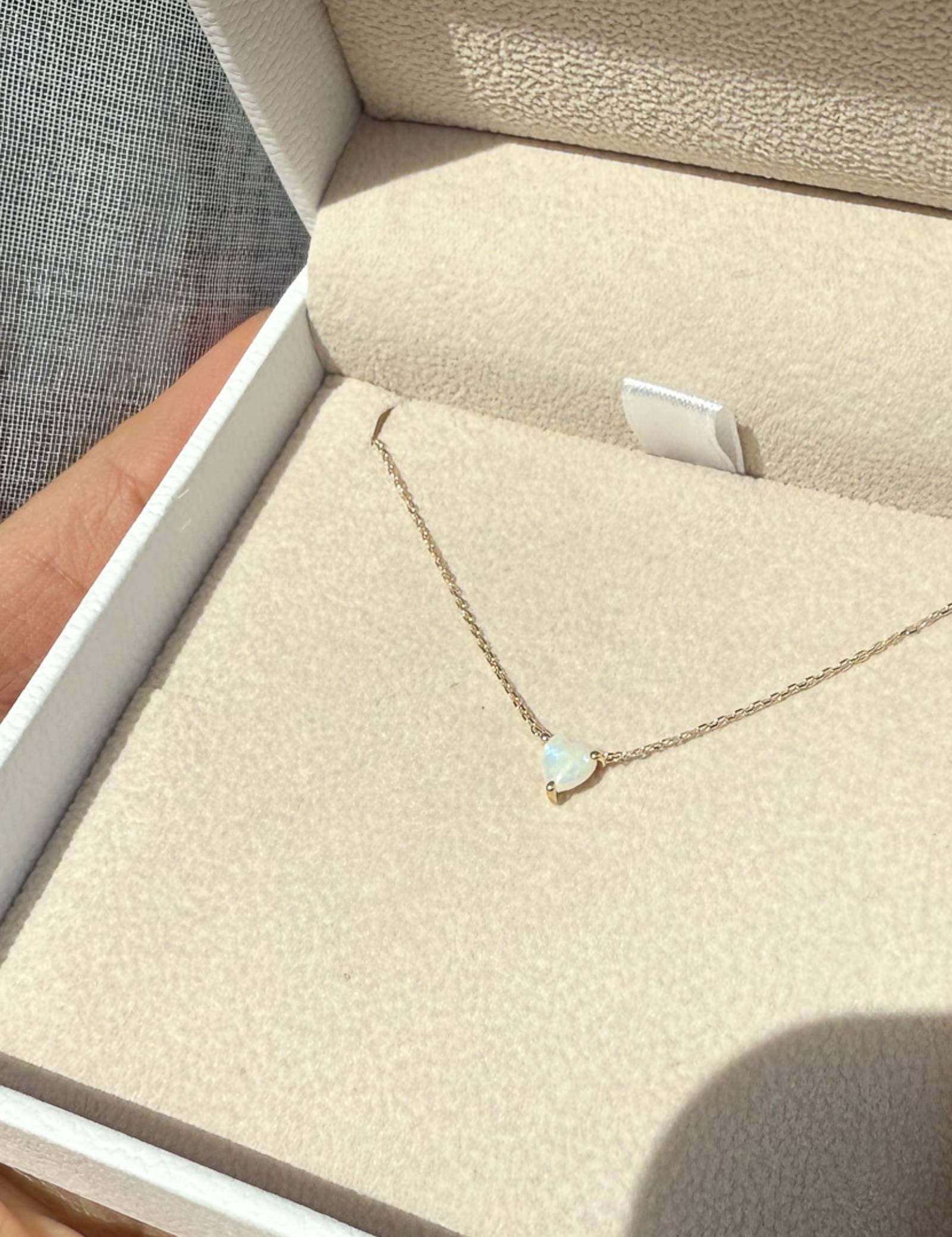 A quiet expression of love, the Opal Heart Necklace is crafted from Solid 9K Gold and set with a softly glowing heart-cut australian opal. Its subtle play of colour shifts in the light, offering an elegant hint of magic.