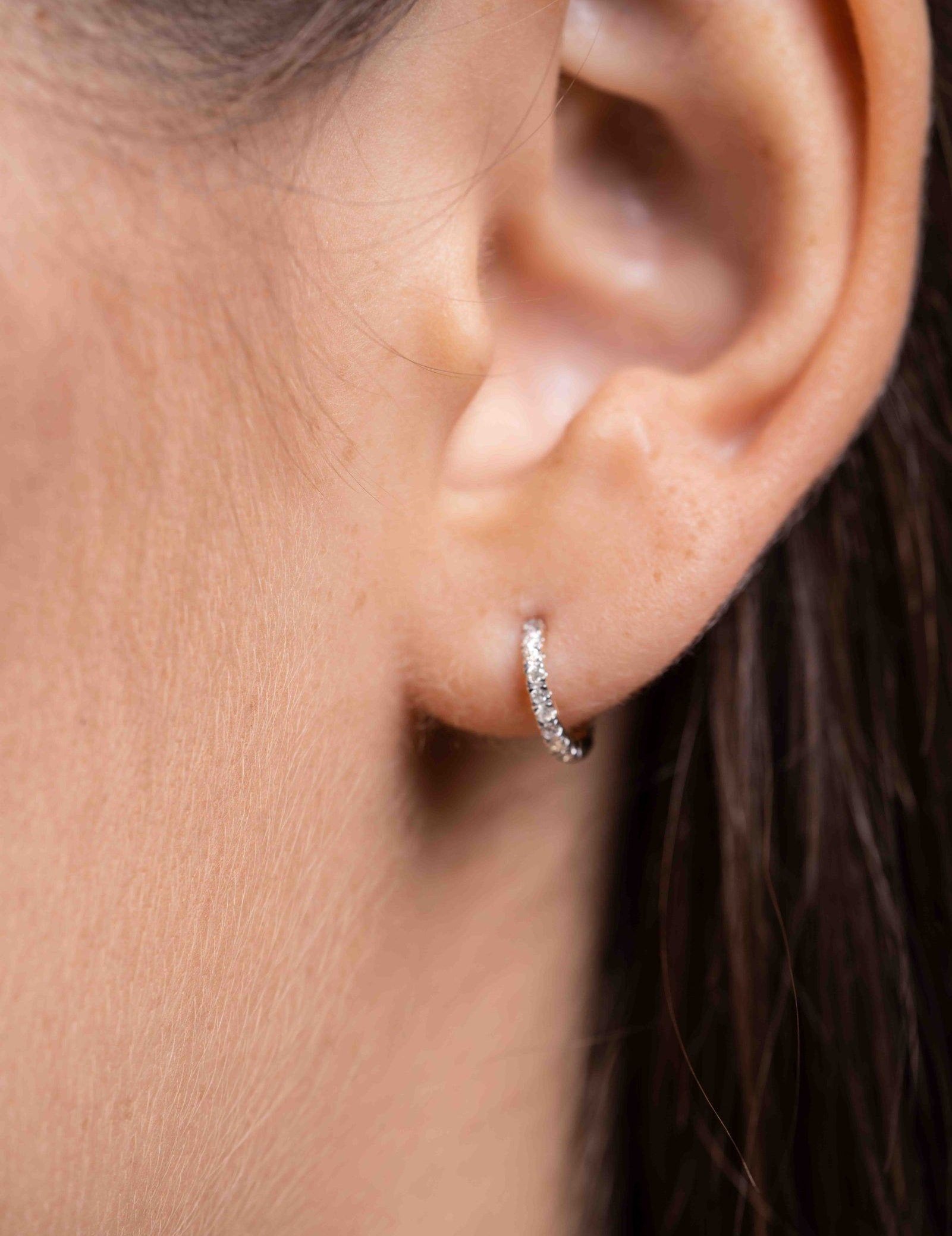 Each Audrey Huggie has a gold weight of approximately 0.47 grams and carat weight of 0.065 per earring. The external diameter measures 11mm, internal diameter of 8mm with a thickness of 1.5mm.