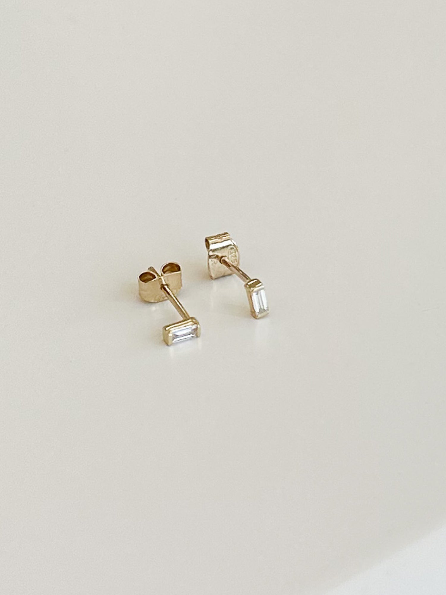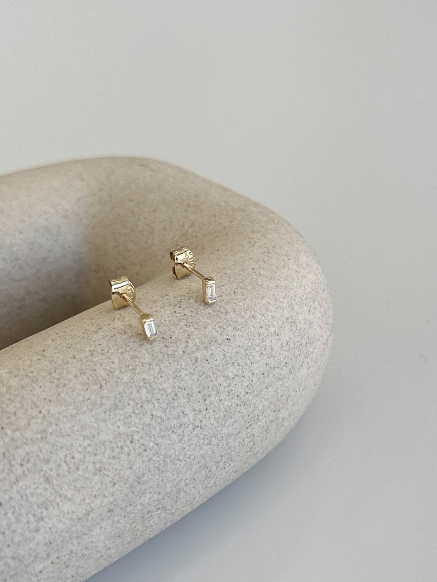 Discover a modern classic for everyday with Celeste Earrings. Crafted from Solid 9k Gold, each stud features exquisite baguette cut diamonds, these studs offer versatility in a minimalist design. Wear them solo for a subtle statement or pair them up for a touch of timeless elegance. Simple yet captivating, they're perfect for any occasion.