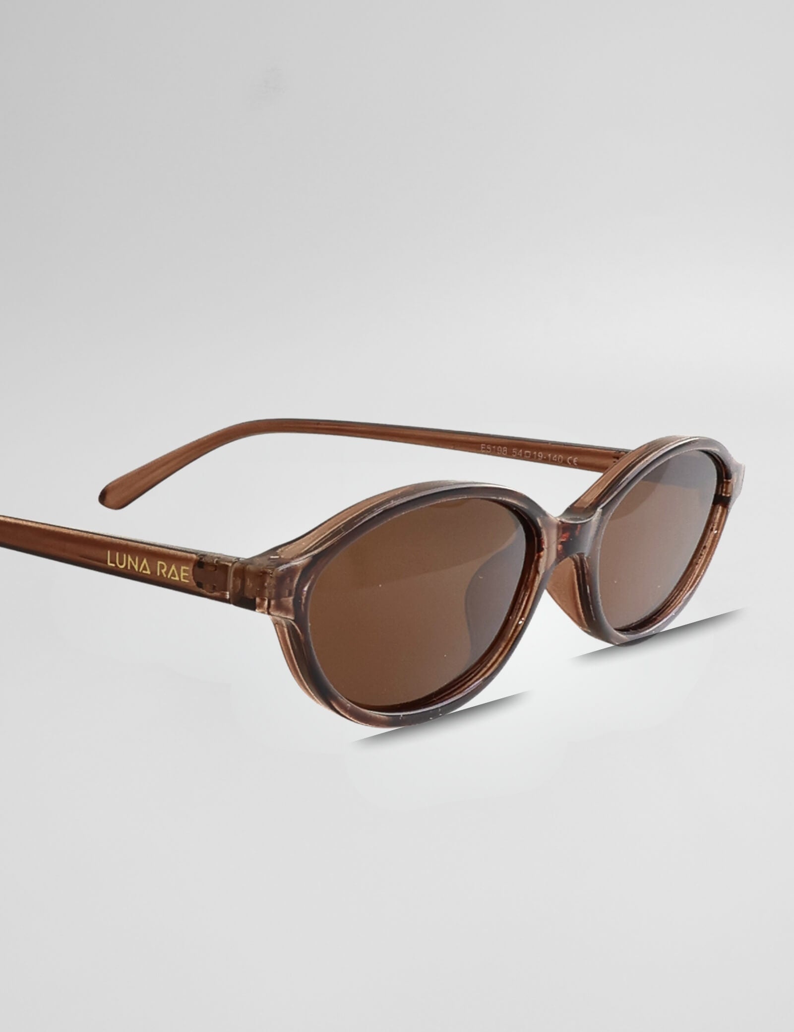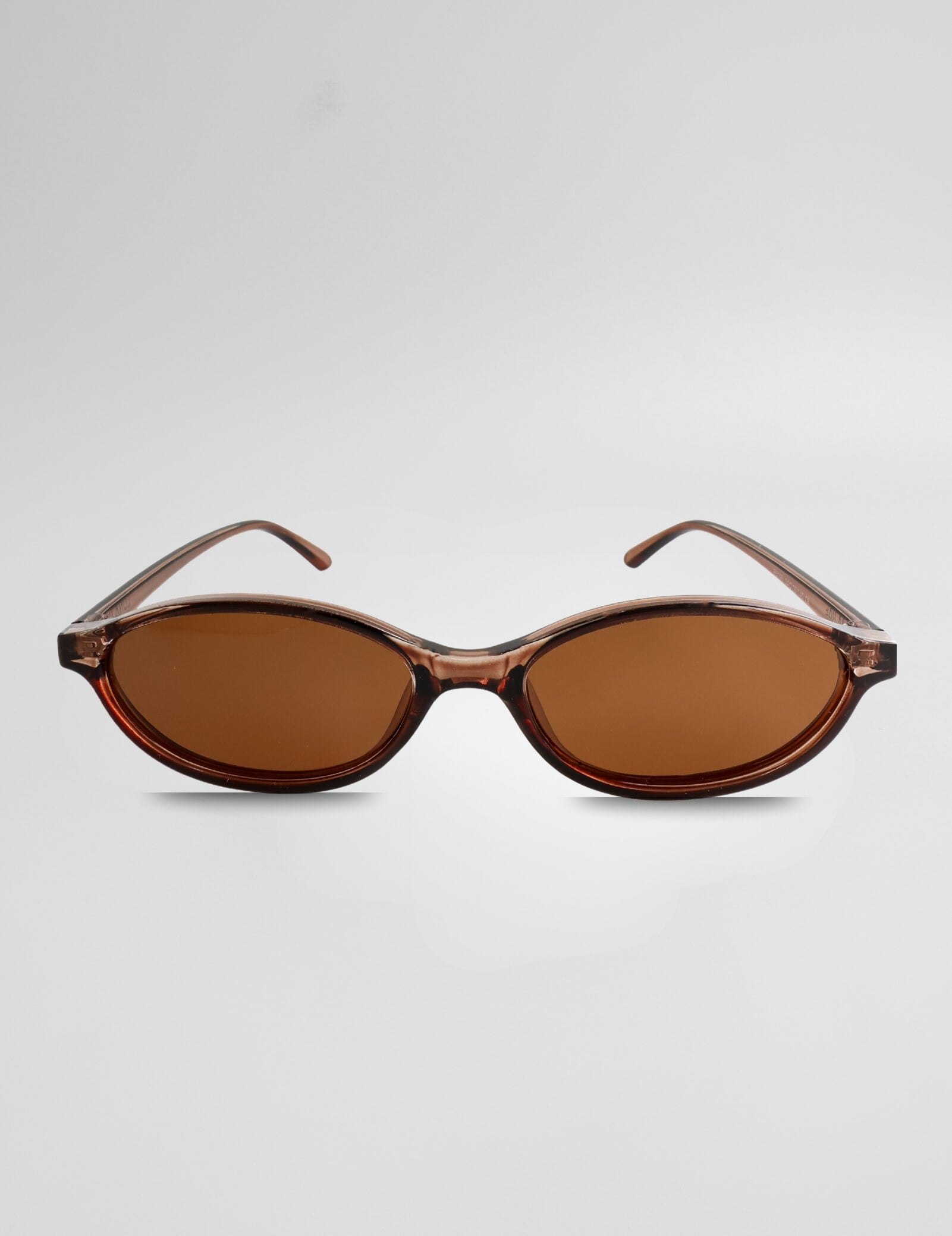 • Design:S lim oval silhouette in warm espresso brown—clean, flattering, and effortlessly modern-retro.
