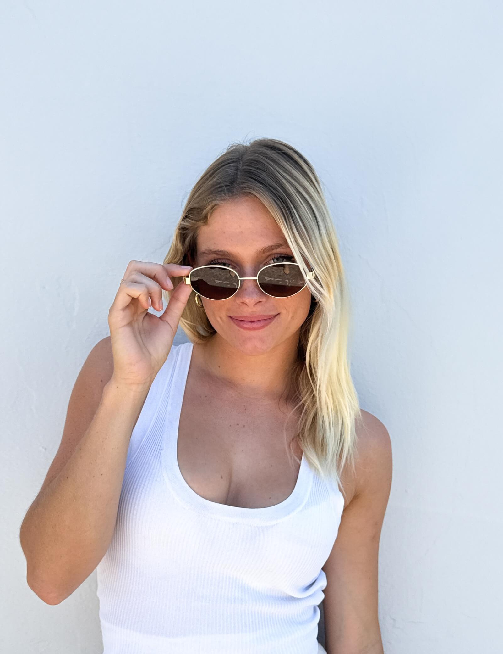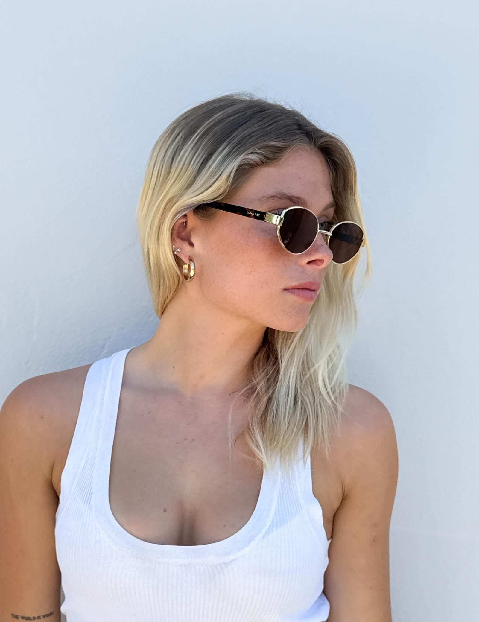A classic pair you’ll keep reaching for. Golden Hour Sunglasses feature slim gold rims, softly rounded lenses, and tortoiseshell temples for a warm, easy-to-wear look.