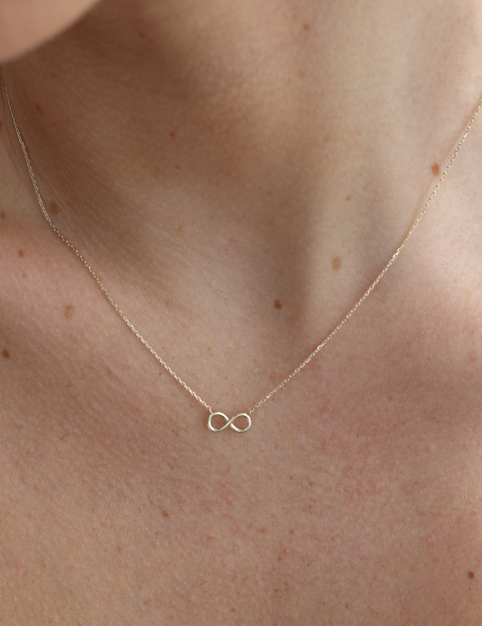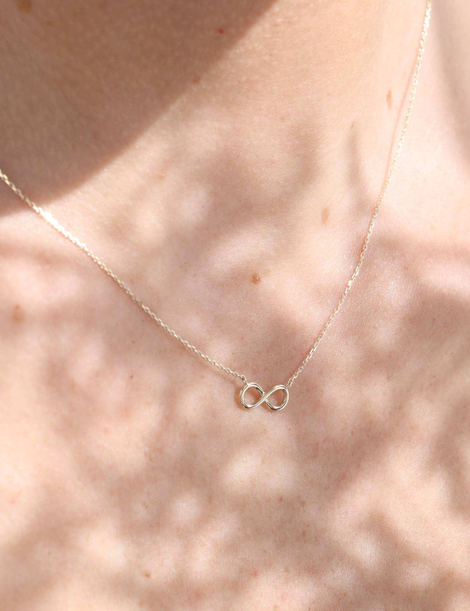 With no beginning and no end, this is our dainty version of the Infinity Necklace