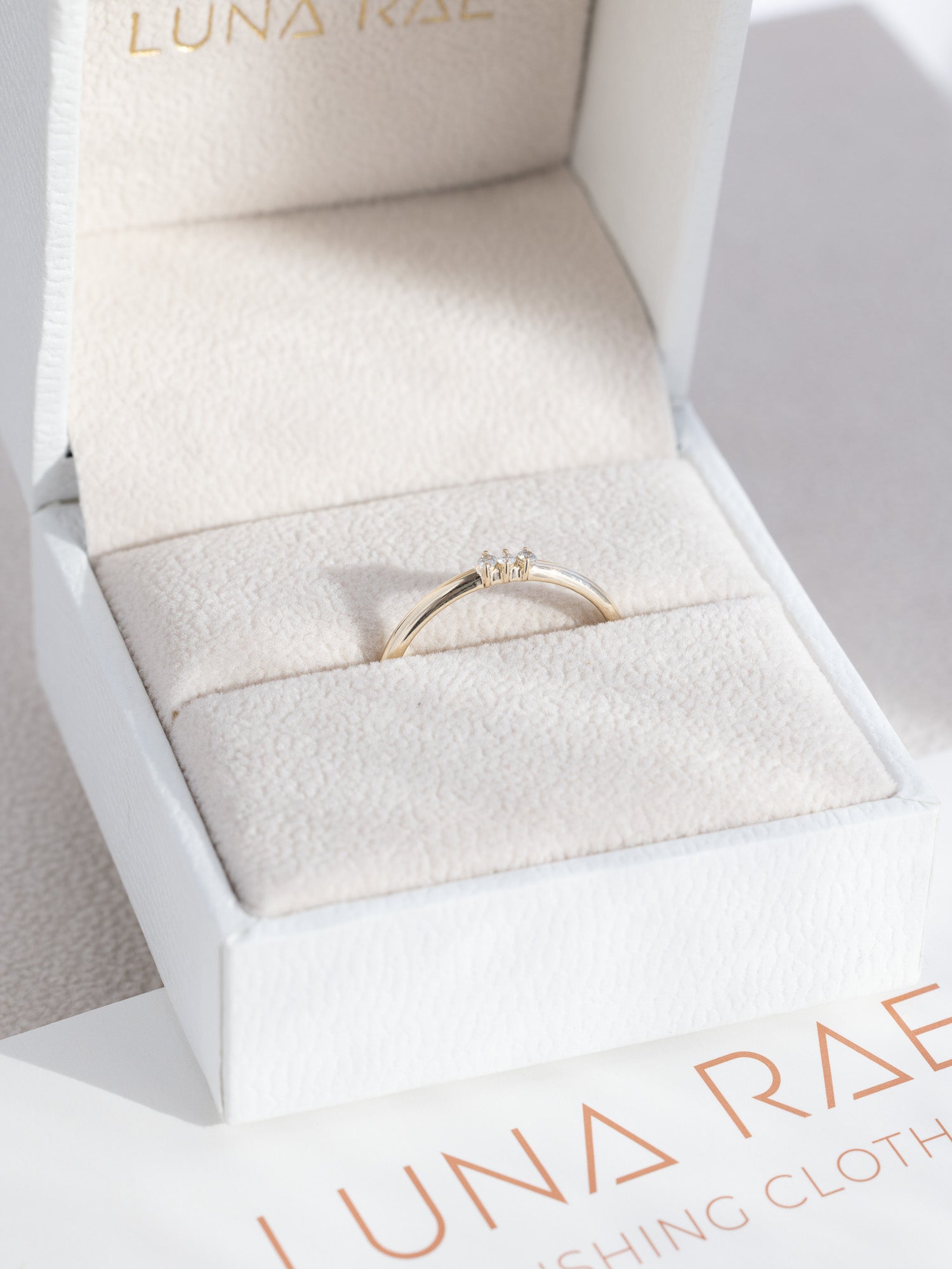 • Premium Packaging: Each Juliette Ring arrives in a signature Luna Rae gift box, accompanied by a complimentary polishing cloth. This makes it a perfect choice for gifting or safekeeping, while the included cloth helps to keep your gold radiant and lustrous.
