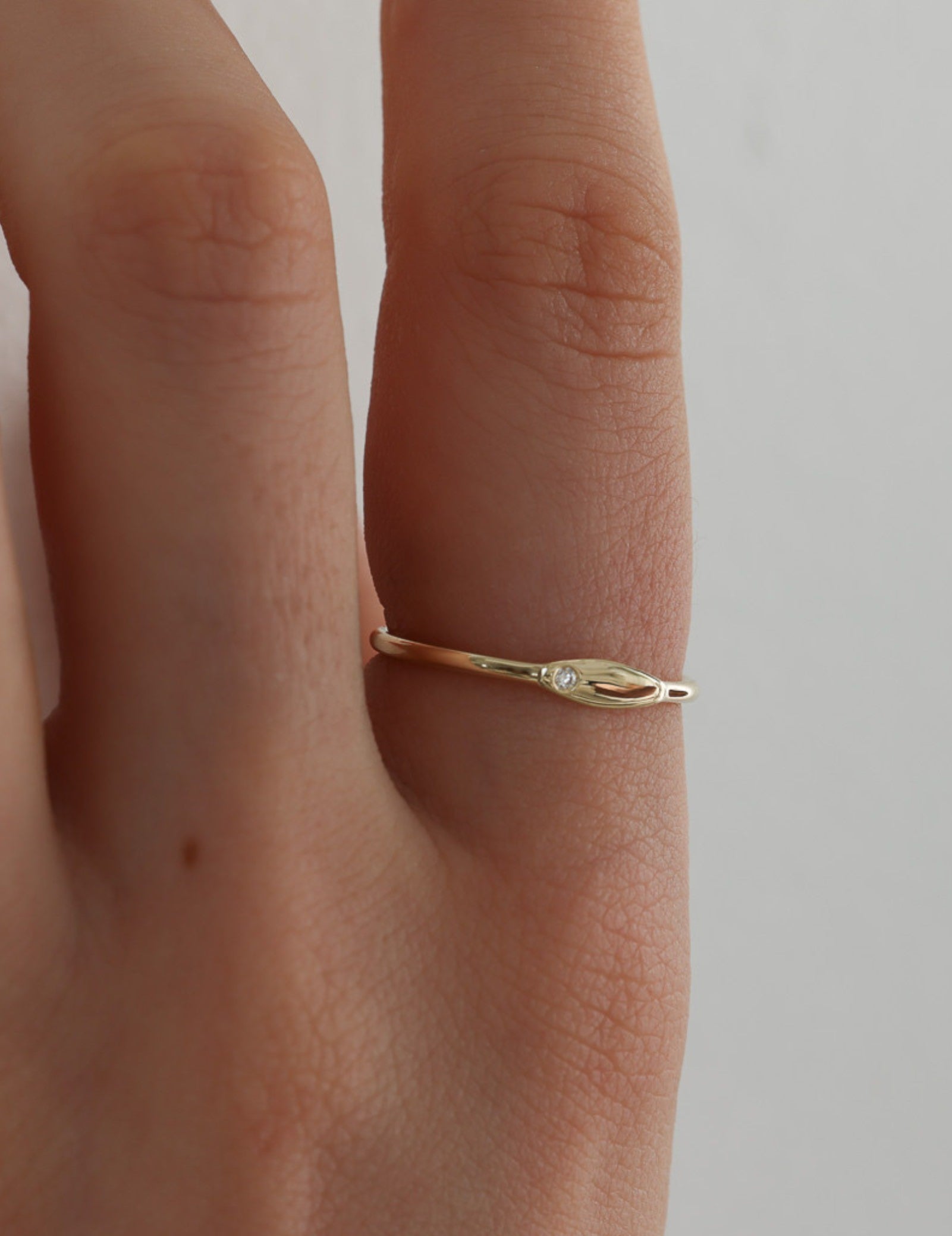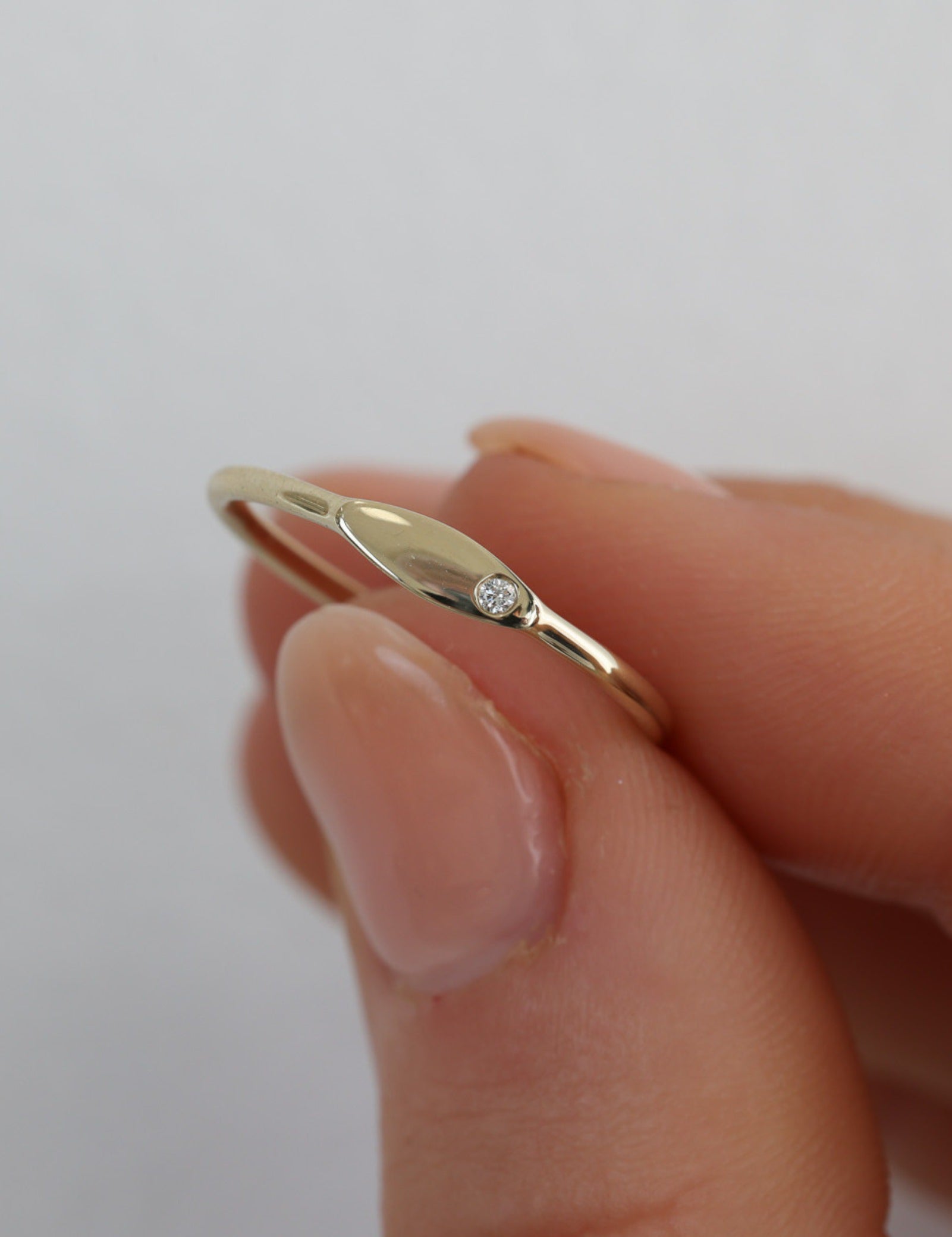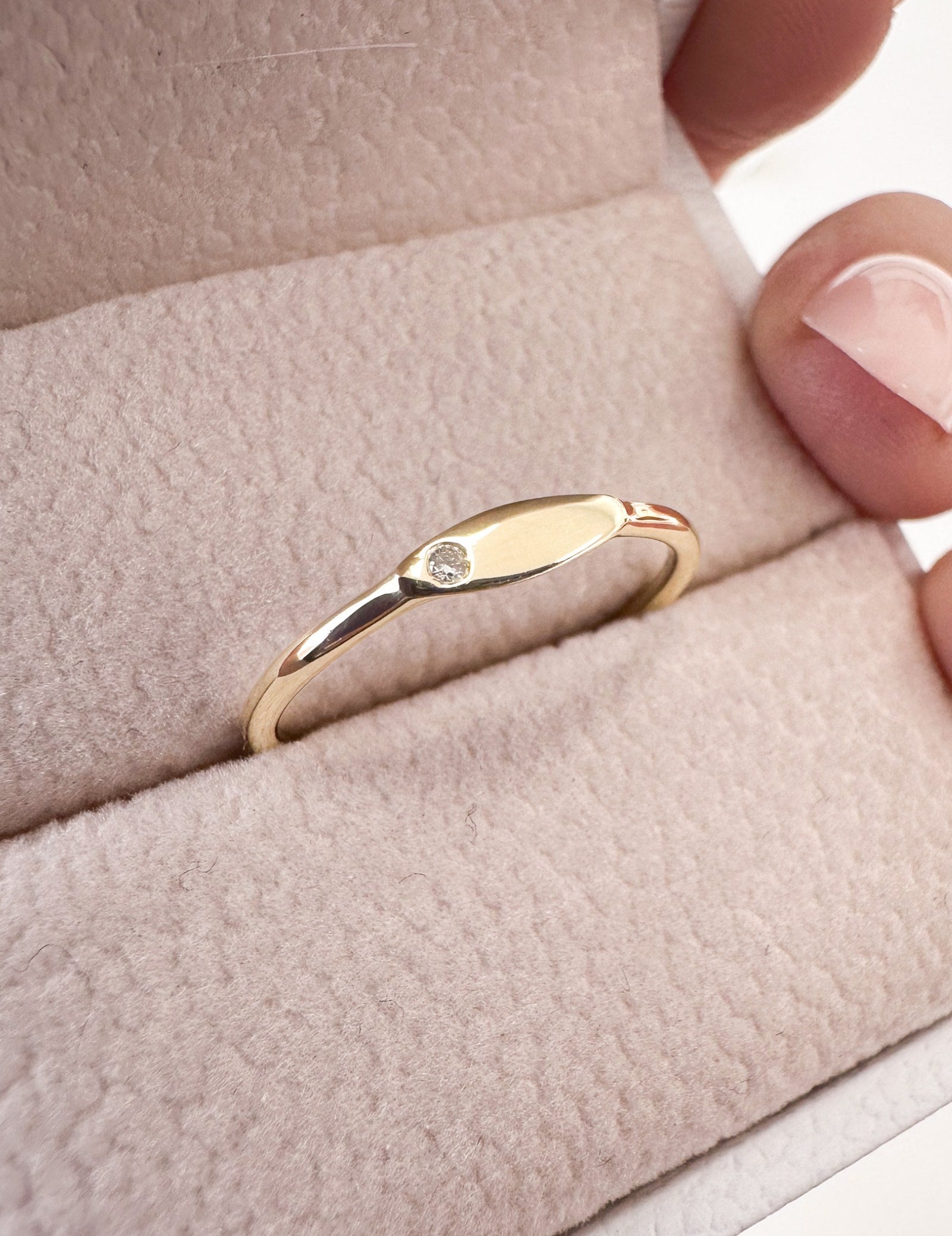 A natural diamond, subtly positioned in the corner, adds a touch of refined sparkle, enhancing its simple beauty. This delicate detail ensures that the Lucille Ring remains a standout piece, perfect for any occasion.