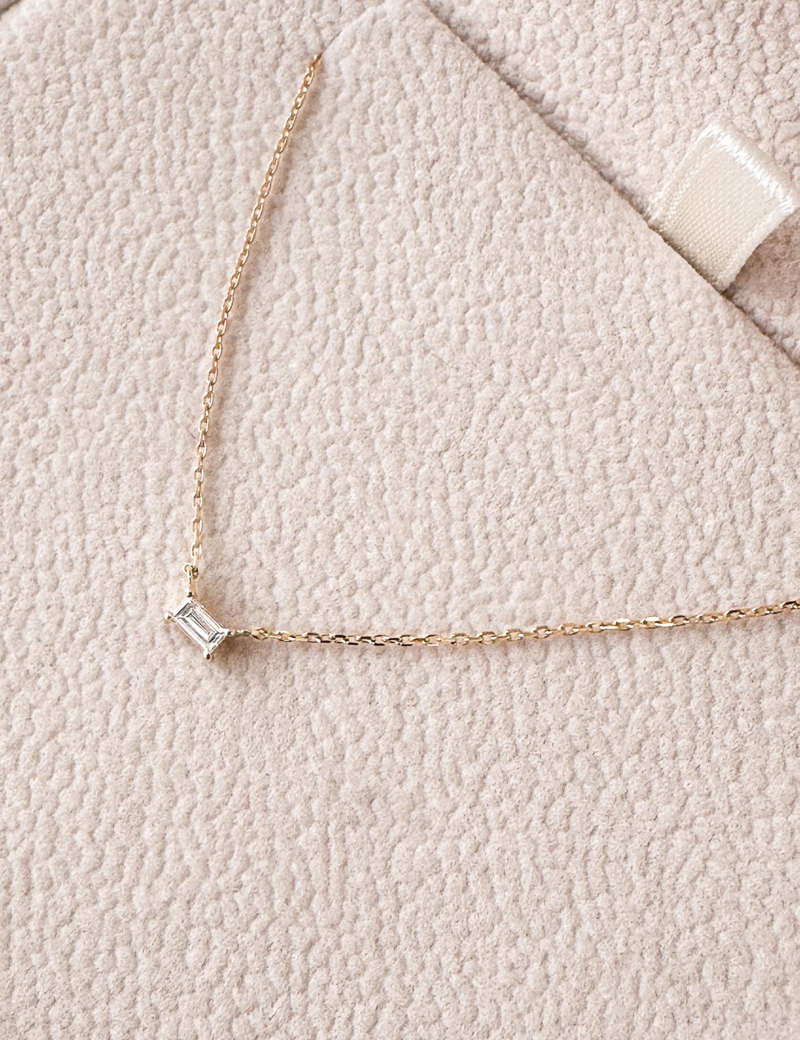 • Diamond Detailing: Adorned with a 0.985ct baguette-cut diamond, this necklace captures and reflects light with a subtle, captivating sparkle.