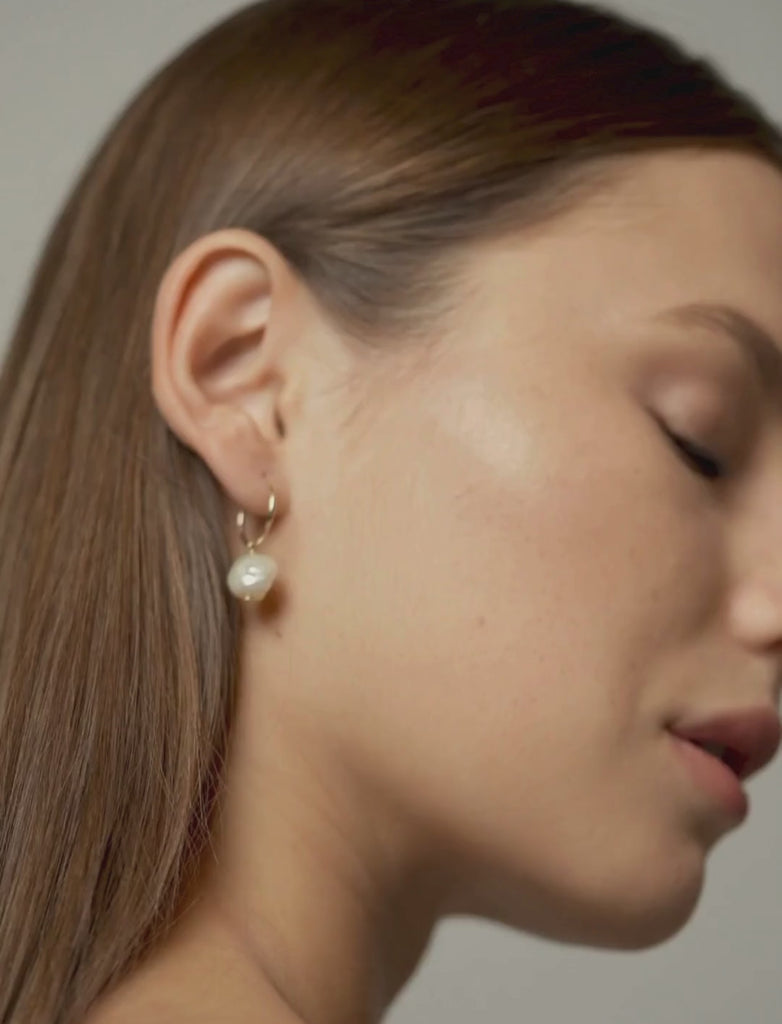 Introducing Luminance Sleepers: Elevate your jewellery collection with these 9K gold sleepers, carefully designed for a refined sense of elegance and comfort. Crafted with a lightweight hollow structure, these sleepers feature large, organic-shaped freshwater pearls, offering a balance of luxury and natural beauty.