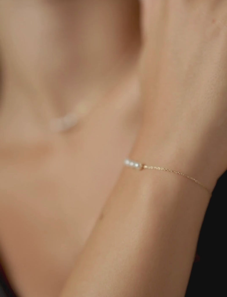 Elevate your style with the Margot Necklace, a piece that epitomises timeless elegance and sophistication. This exquisite necklace features a delicate chain crafted from 9k solid gold, beautifully adorned with three lustrous freshwater pearls. The pearls serve as the focal point, each capturing light in a way that complements the gold chain and adds a touch of luxury.