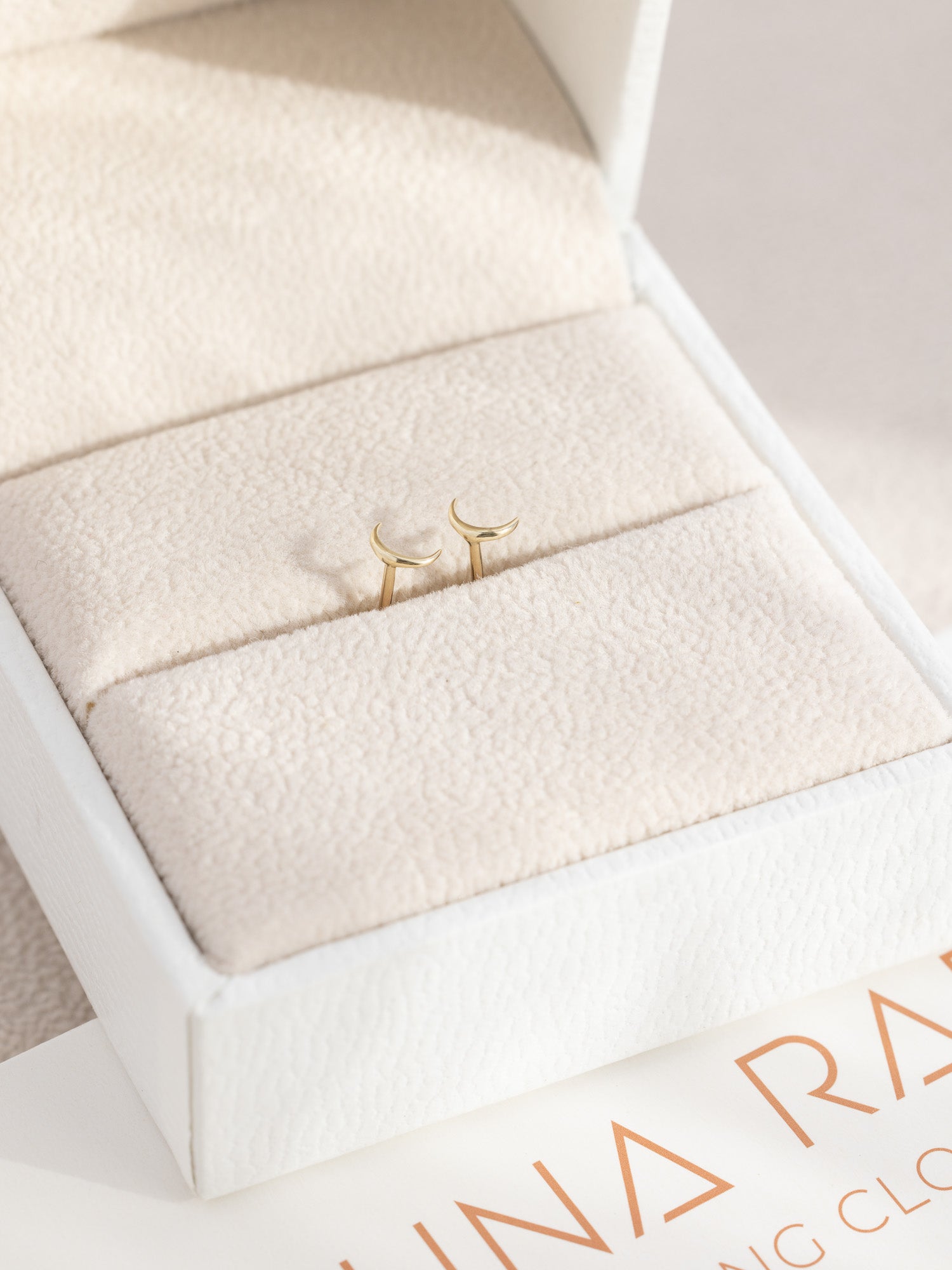 The Luna Earrings, our signature style, are here to embrace the moon and everything that it symbolises with these delicate and sweet studs. Crafted from solid gold, these studs can be worn every day with the assurance that the colour will never fade. Add the perfect touch of style with this simple addition to your look.