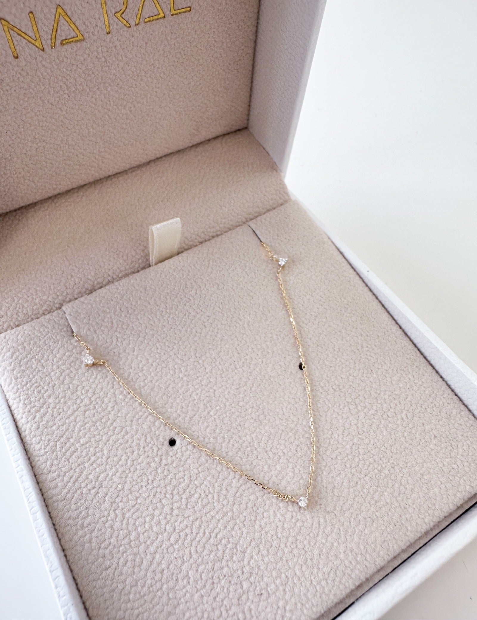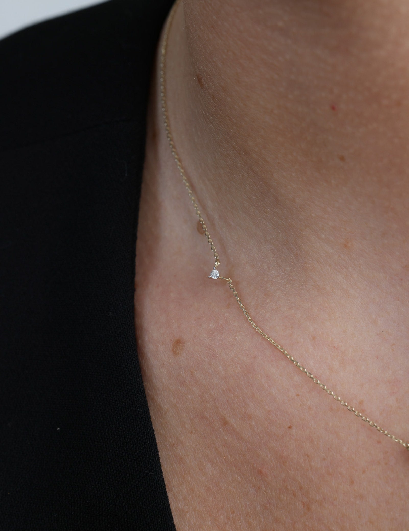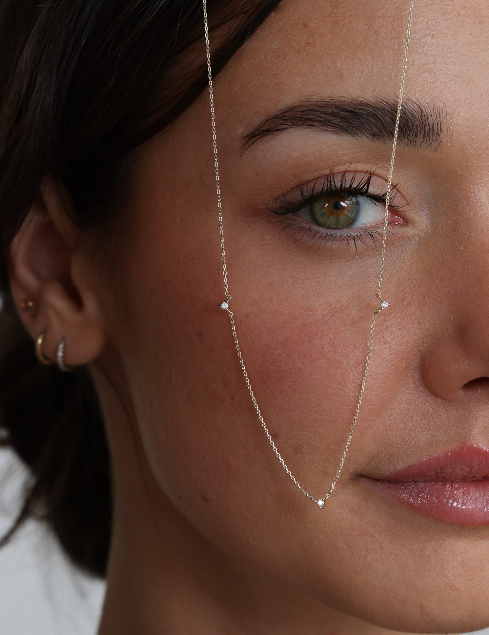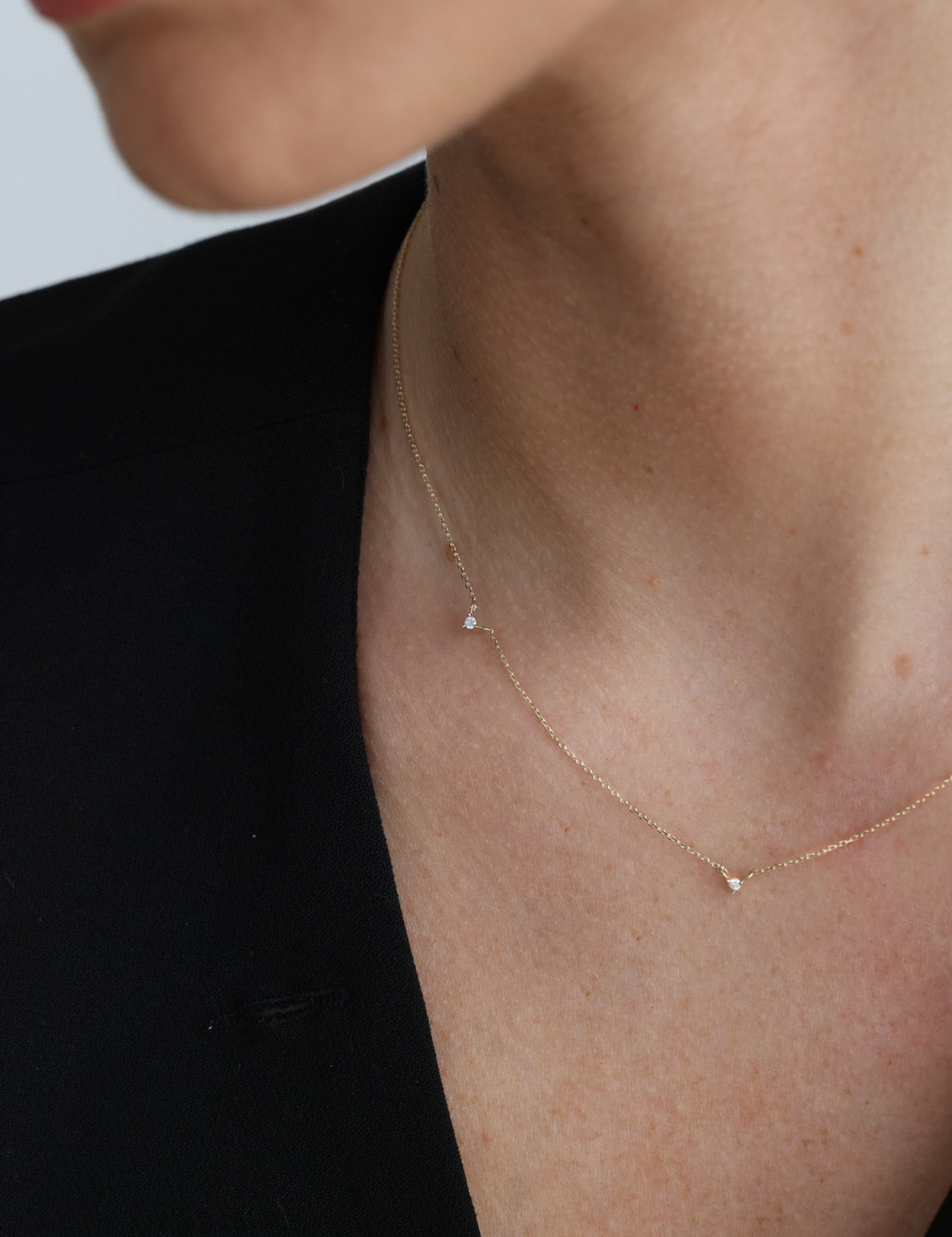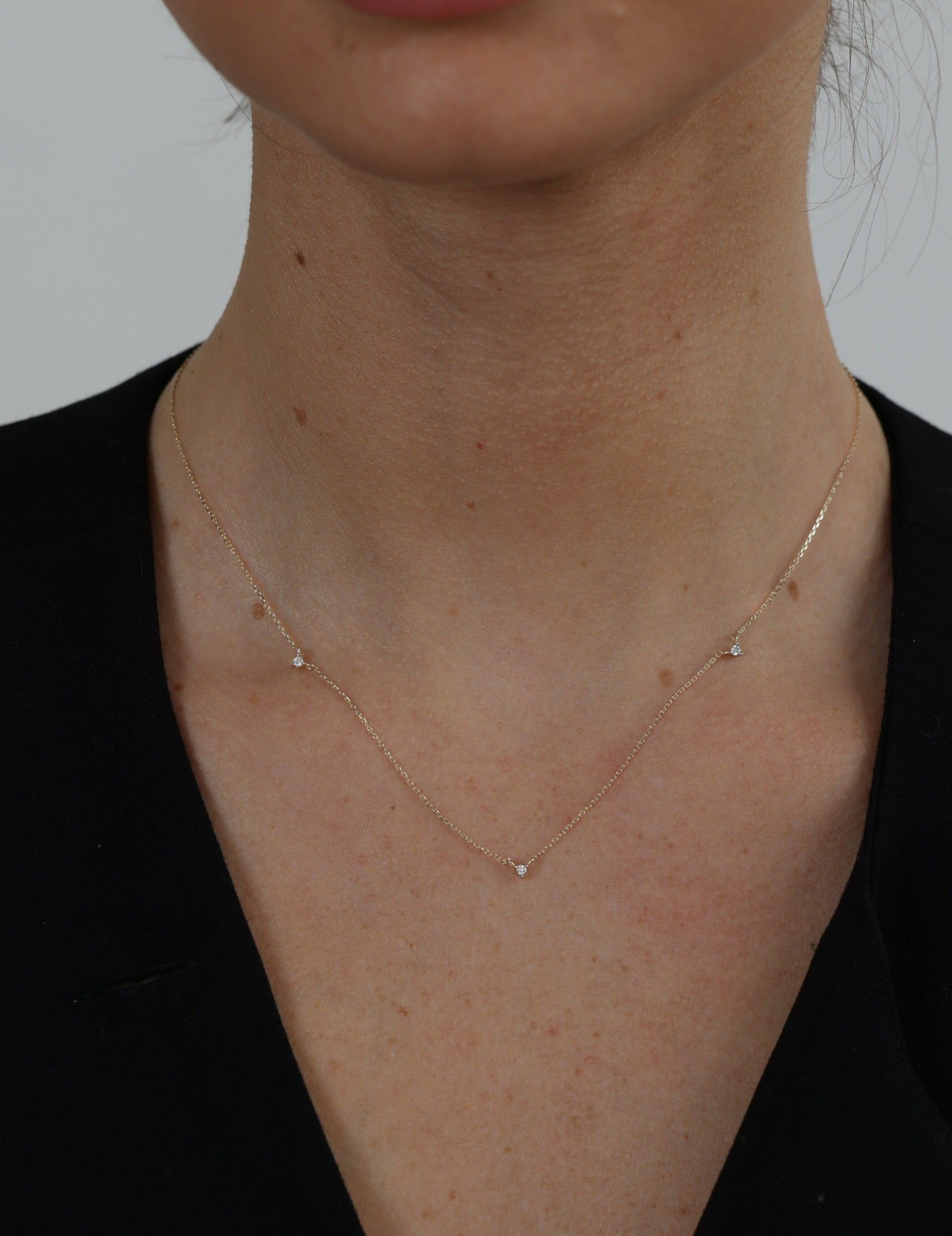Experience the allure of the Petite Diamond Necklace, featuring a stunning trio of floating diamonds that beautifully symbolize the past, present, and future. This elegant design represents eternal love and connection, making it a meaningful choice for those who cherish both beauty and significance in their jewellery.