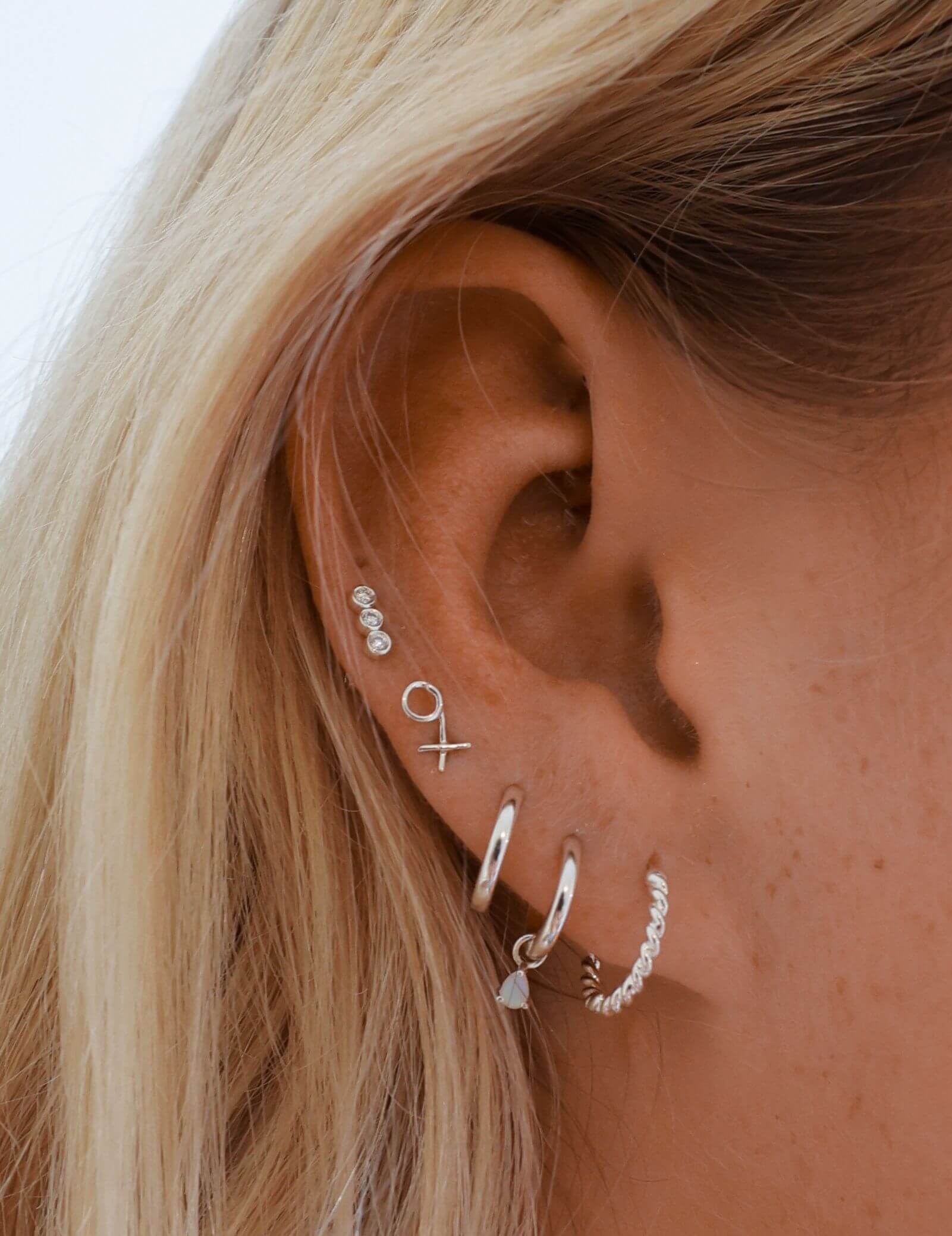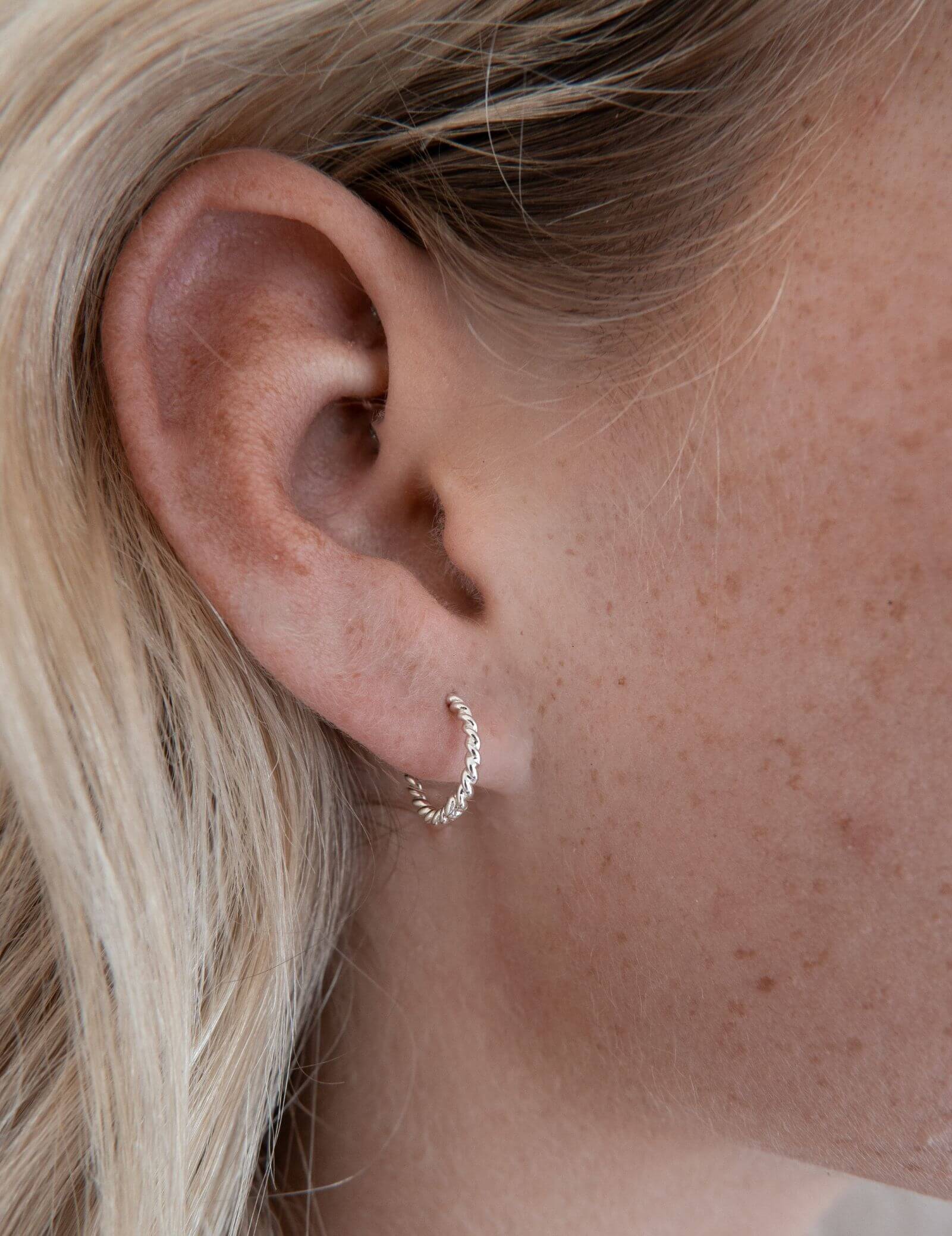 Add a touch of everyday elegance to your style with Lyra Huggies. Crafted from Sterling Silver these huggie-style earrings feature a twisted design that offers a modern and unique twist on classic earrings.