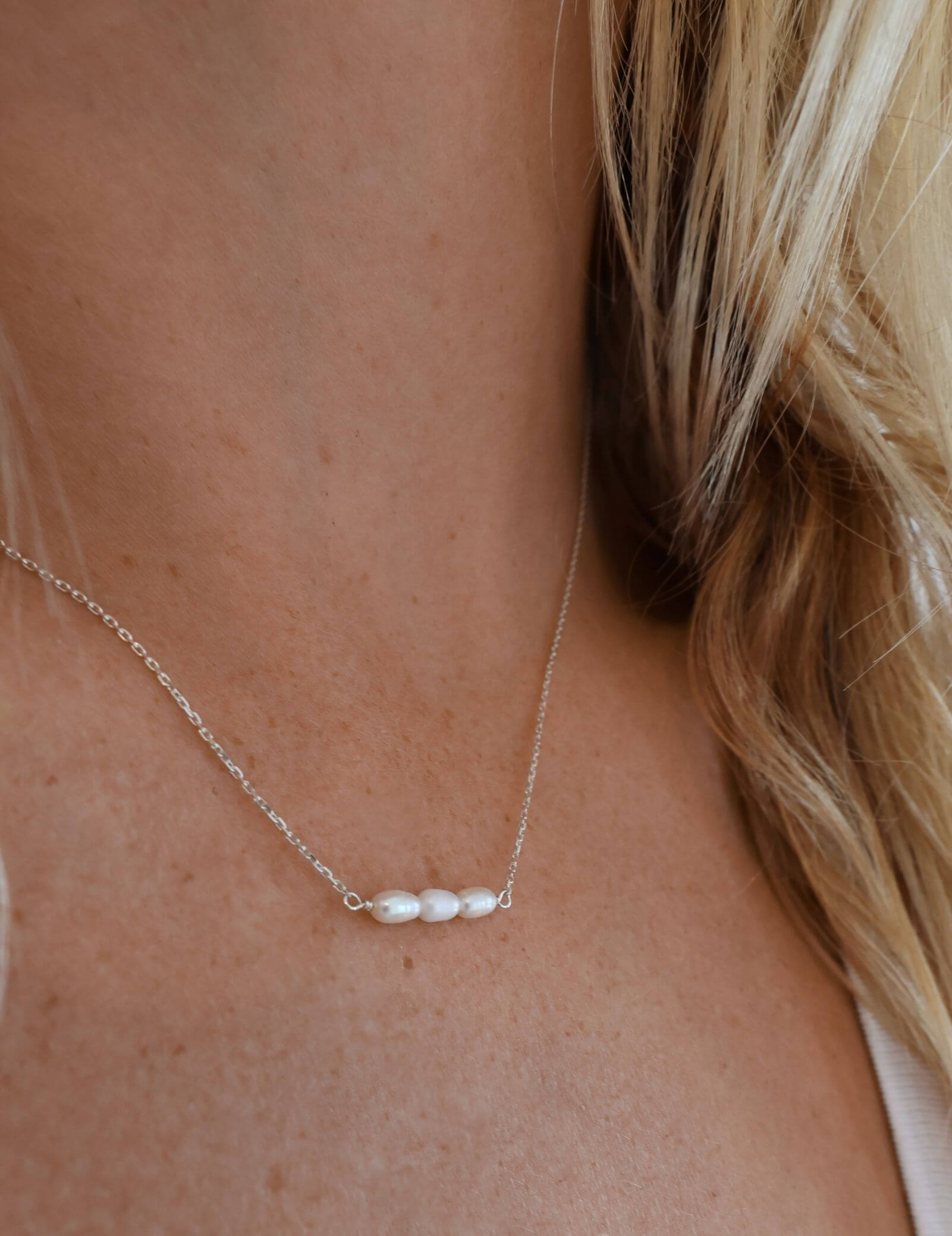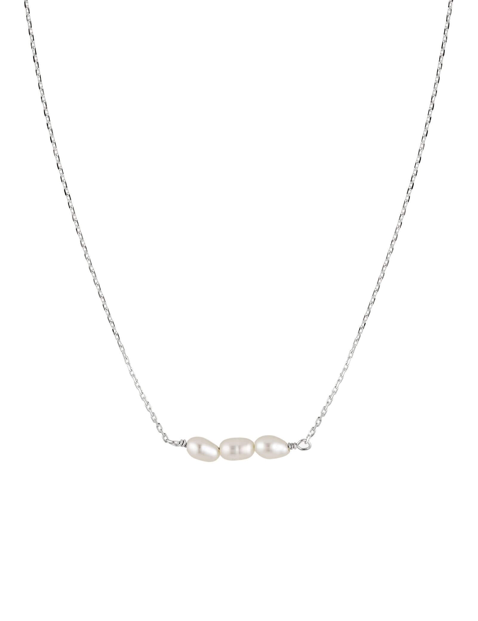 Elevate your style with the Margot Necklace, a piece that epitomises timeless elegance and sophistication. This exquisite necklace features a delicate chain crafted from sterling silver, beautifully adorned with three lustrous freshwater pearls. The pearls serve as the focal point, each capturing light in a way that complements the silver chain and adds a touch of luxury.