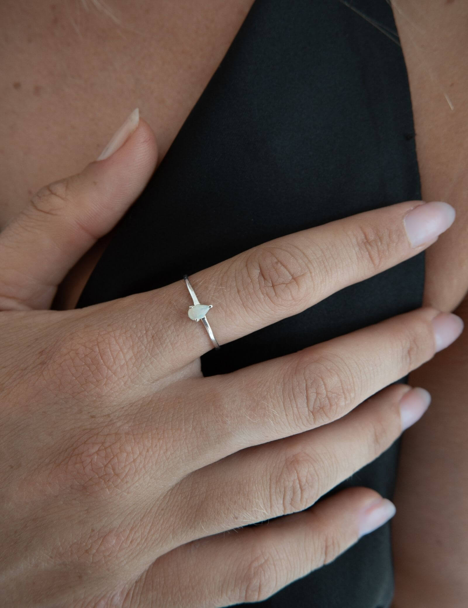• Teardrop Australian Opal: The ring features a teardrop .14 carat Australian Opal measuring 5mm high & 3.5mm wide.