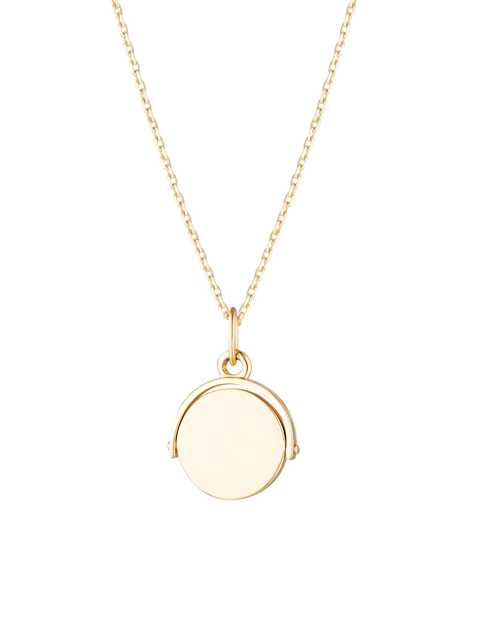 Carry your most precious memories with you through the Spinner Pendant, crafted from solid 9K gold. The rotatable coin disk turns to show different designs on each side, offering a personal touch that’s uniquely yours.