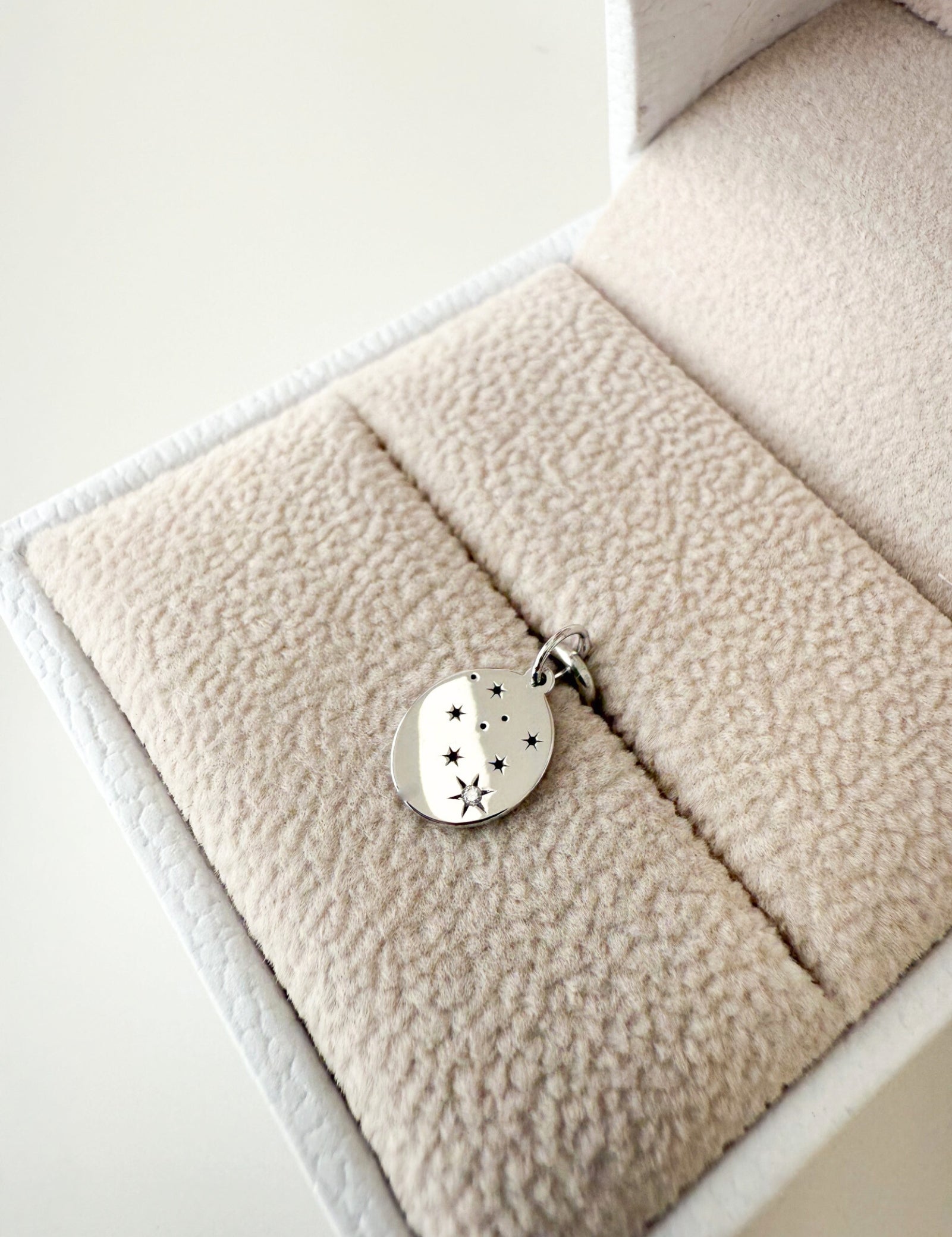 Available as a charm only or paired with either a 50cm or 45cm solid white gold chain, this necklace is adaptable, meaningful, and personal to your astrological sign.