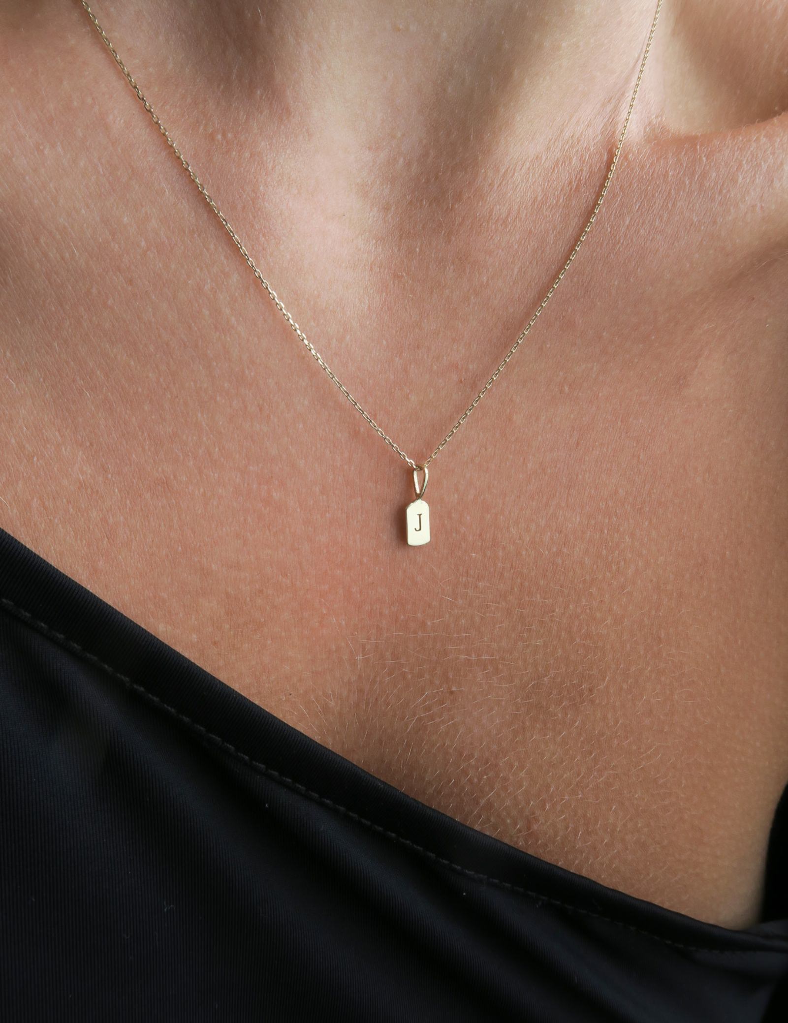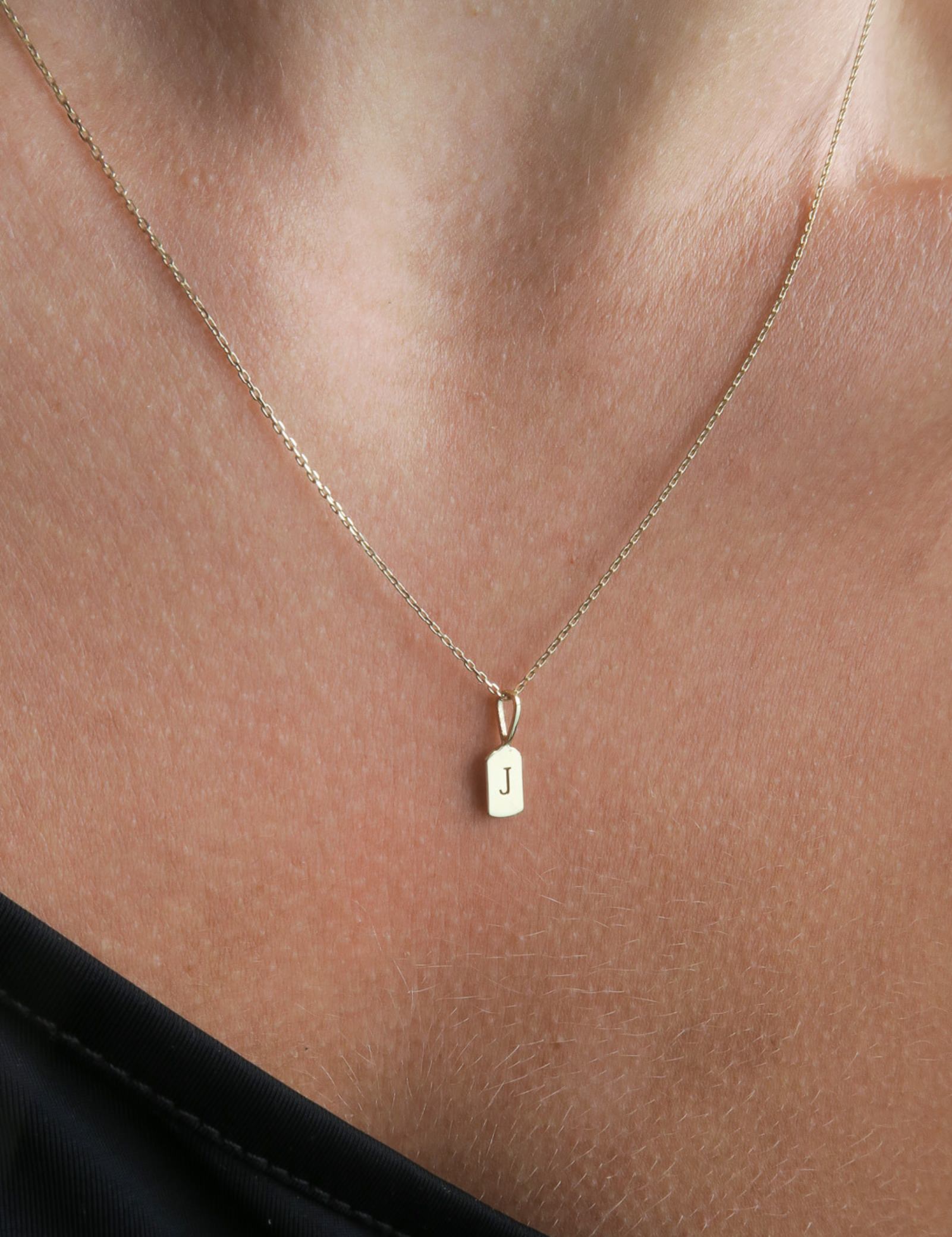 The Luna Letter J charm measures 11mm x 3.6mm, ensuring a subtle yet distinct presence on any outfit.