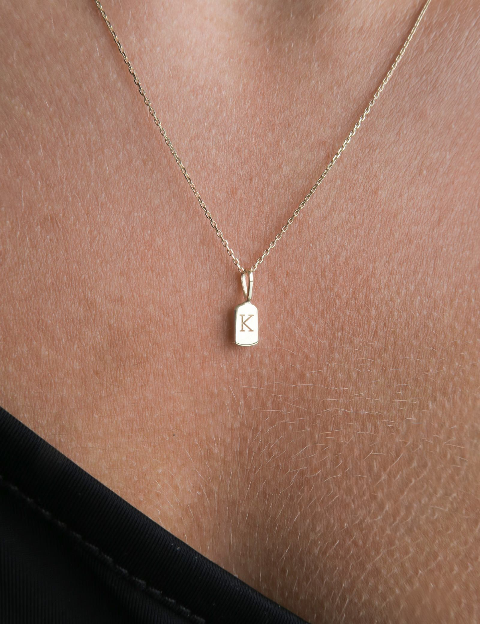 The Luna Letter K charm measures 11mm x 3.6mm, ensuring a subtle yet distinct presence on any outfit.