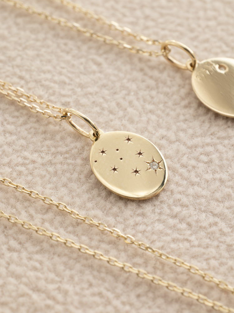 Available as a charm only or paired with either a 50cm or 45cm solid gold chain, this necklace is adaptable, personal, and meaningful to your astrological sign.