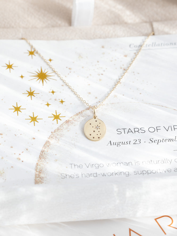 Explore the celestial majesty with the Stars of Virgo Necklace. Echoing the constellation Virgo, this necklace is a special emblem of those born under the zodiac sign from August 23 to September 22.
